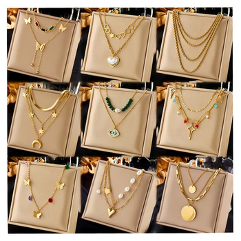 Stainless Steel Geometry Star Moon Butterfly Pendant Multilayer Chain Choker Necklace for Women Wedding Accessories