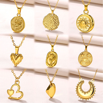 18 Gold Plated Stainless Steel Heart Rose Flower Pendant Necklace Women's Jewelry Fashion Moon Choker Necklace Gift