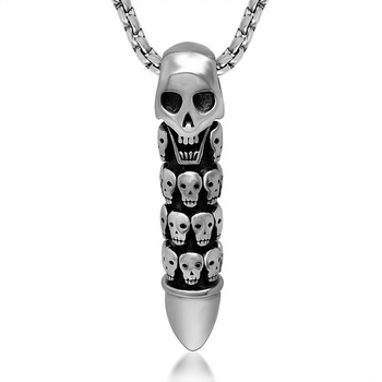 Rock Hippie Punk Style Bullet Pendant With Skulls Stainless Steel Charm Necklace