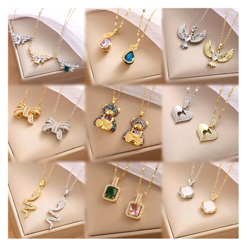 316L Stainless Steel Gold Plated Daisy Heart Bear Bow Zirconia Pendant Necklace for Women Girls Charm Luxury Jewelry