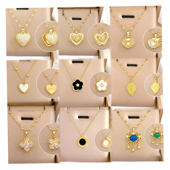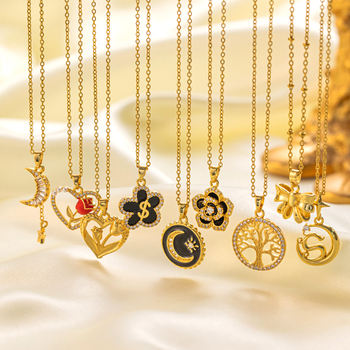Dainty Arrival Stainless Steel 18K Gold Zircon Clover Heart Bow Pendant Necklace Women Cz Moon and Star Necklace for Gift