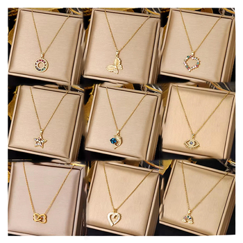 Hot Trendy Delicate Stainless Steel Butterfly Four Leaf Clavicle Chain Pendant Necklace for Women Choker Jewelry