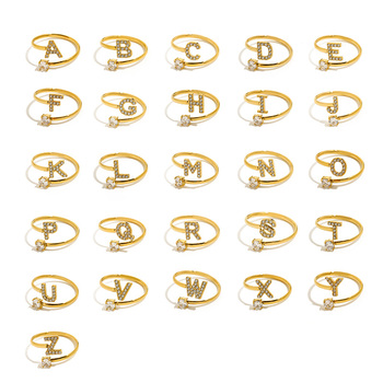 Showfay basit takı olmayan kararmaz ücretsiz 18K altın kaplama paslanmaz çelik İlk harf alfabe CZ zirkon İlk yüzük