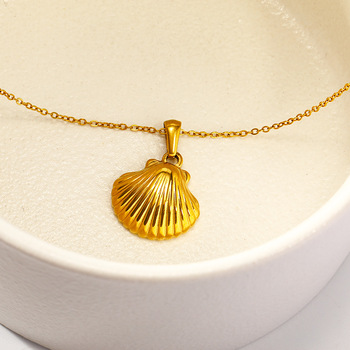 Stainless Steel 18K Gold Starfish Shell Pendant Necklace for Women Antique Sector Shape Clavicle Chain Pendant Gifts
