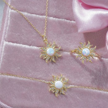 Hot Bán Opal Hướng Dương Mặt Dây Chuyền Vòng Cổ Retro Ánh Sáng Sang Trọng Phong Cách Sao Hoa Vòng Đeo Tay Nhẫn Bông Tai Thiết Lập Thời Trang Opal Đồ Trang Sức